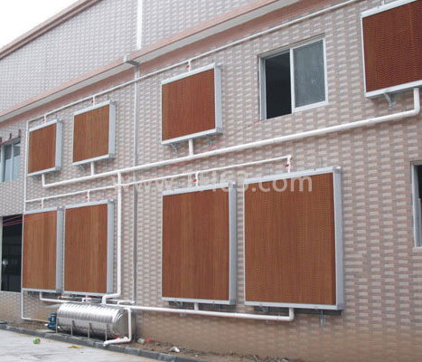 廣州風(fēng)機(jī)水簾,濕簾是安裝在窗戶的另一側(cè),空氣穿過(guò)濕簾蒸發(fā),再由風(fēng)扇吹向各各角落,致使室內(nèi)溫度迅速下降起來(lái).溫室結(jié)構(gòu)與濕簾一定要完善配合才能發(fā)揮濕簾的作用。
