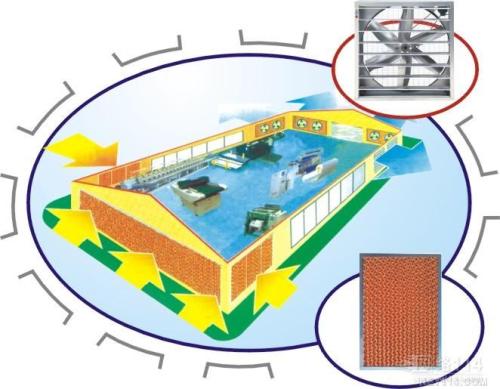 2.降溫水簾系統(tǒng),對(duì)車(chē)間外空氣二次制冷進(jìn)入車(chē)間降溫。車(chē)間安裝負(fù)壓風(fēng)機(jī)的對(duì)面或者側(cè)面墻壁的窗戶上安裝降溫水簾系統(tǒng),把進(jìn)入車(chē)間內(nèi)的補(bǔ)充空氣經(jīng)過(guò)降溫水簾二次降溫,變成溫度更低的空氣被負(fù)壓風(fēng)機(jī)強(qiáng)行引入到車(chē)間內(nèi)降溫,此方法與負(fù)壓風(fēng)機(jī)配合使用降溫,需要注意的是水簾降溫系統(tǒng)空氣的量和速度要足夠補(bǔ)充車(chē)間內(nèi)高溫悶熱空氣排出的量和速度,而且要做好車(chē)間的密封,盡量保證進(jìn)入車(chē)間的空氣經(jīng)過(guò)降溫水簾系統(tǒng)。