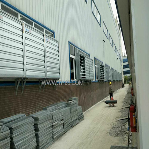 在廠房窗戶的一端安裝上降溫水簾片/濕簾墻降溫設(shè)備,與之相對的一端安裝負壓風(fēng)機,應(yīng)用負壓風(fēng)機將廠房內(nèi)的熱氣抽出,在通風(fēng)散熱除塵的同時,室內(nèi)外造成氣壓差,促使外界的空氣經(jīng)由降溫水簾片/濕簾墻所形成的水膜蒸發(fā)吸熱瞬間降溫,涼爽空氣便會源源不斷的吹入廠房內(nèi)部,進而營造一個舒適、涼爽、清新的工作環(huán)境。