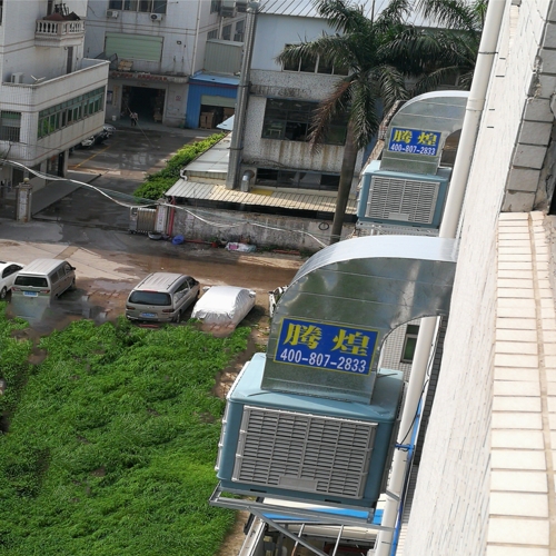 機(jī)械加工廠車間通風(fēng)散熱系統(tǒng)冷風(fēng)機(jī)來送風(fēng)的方法較好用。室外空氣經(jīng)過冷風(fēng)機(jī)濕簾蒸發(fā)處理后,使空氣降溫4-10℃,通過風(fēng)機(jī)和送風(fēng)管道送到車間內(nèi),達(dá)到降溫的效果同時(shí)空氣經(jīng)過濕簾過濾凈化,使空氣潔凈度提高。送風(fēng)機(jī)可以通過風(fēng)管或者調(diào)節(jié)風(fēng)口直接吹到工人工位處,使工人工作操作附近區(qū)域涼爽舒適。送風(fēng)機(jī)正壓送風(fēng),使車間高溫污染氣體從車間入口處或者窗口處擠壓到室外,達(dá)到循環(huán)換氣的效果。該方法投資適中、效果明顯,使用成本低。每臺(tái)設(shè)備每天消耗約5公升的自來水,包含電費(fèi)合計(jì)每臺(tái)每日天運(yùn)行成本約20元錢,相比傳統(tǒng)空調(diào)節(jié)約80%以上。對(duì)車間溫度要求較高的工廠建議使用。
